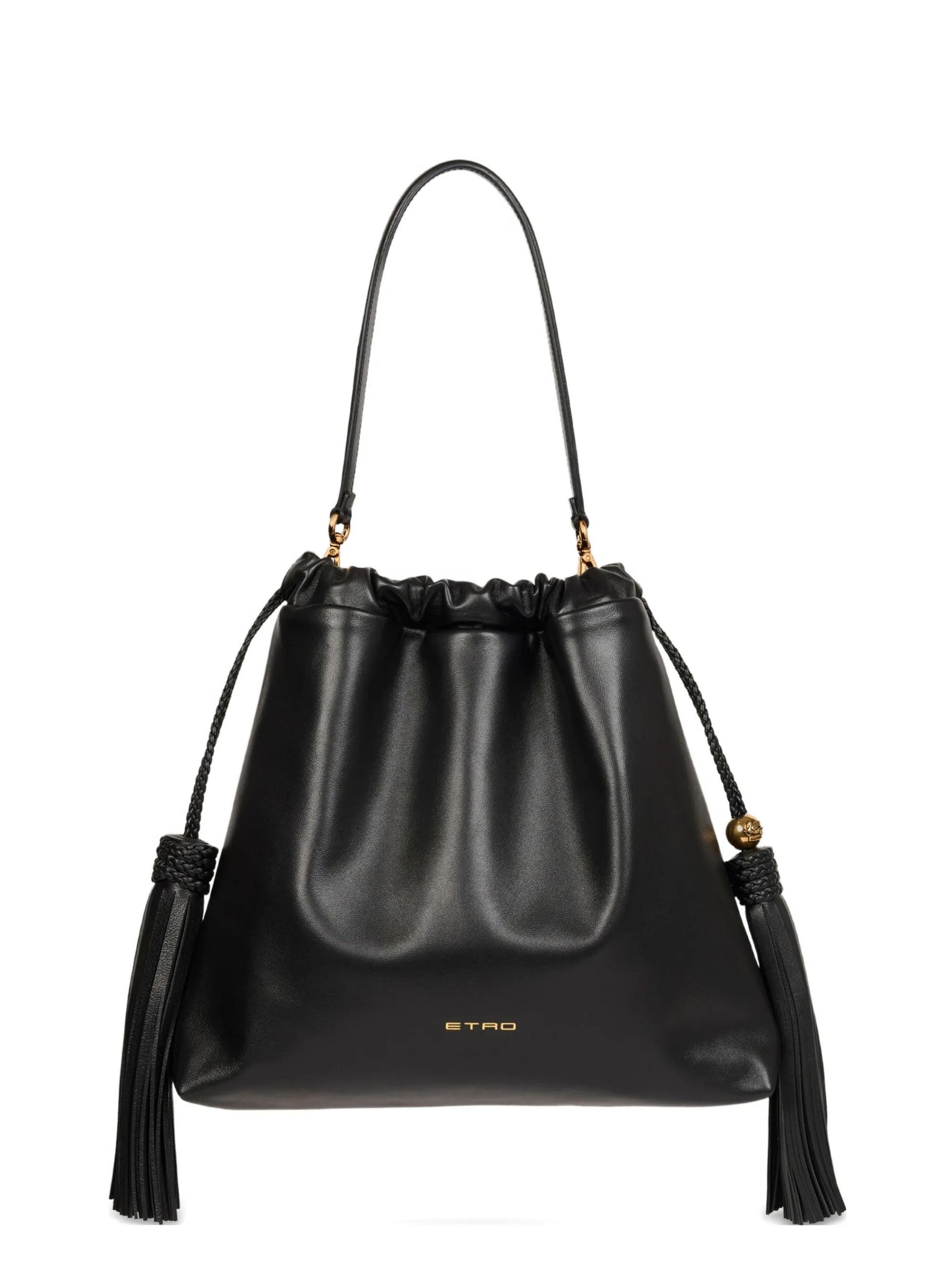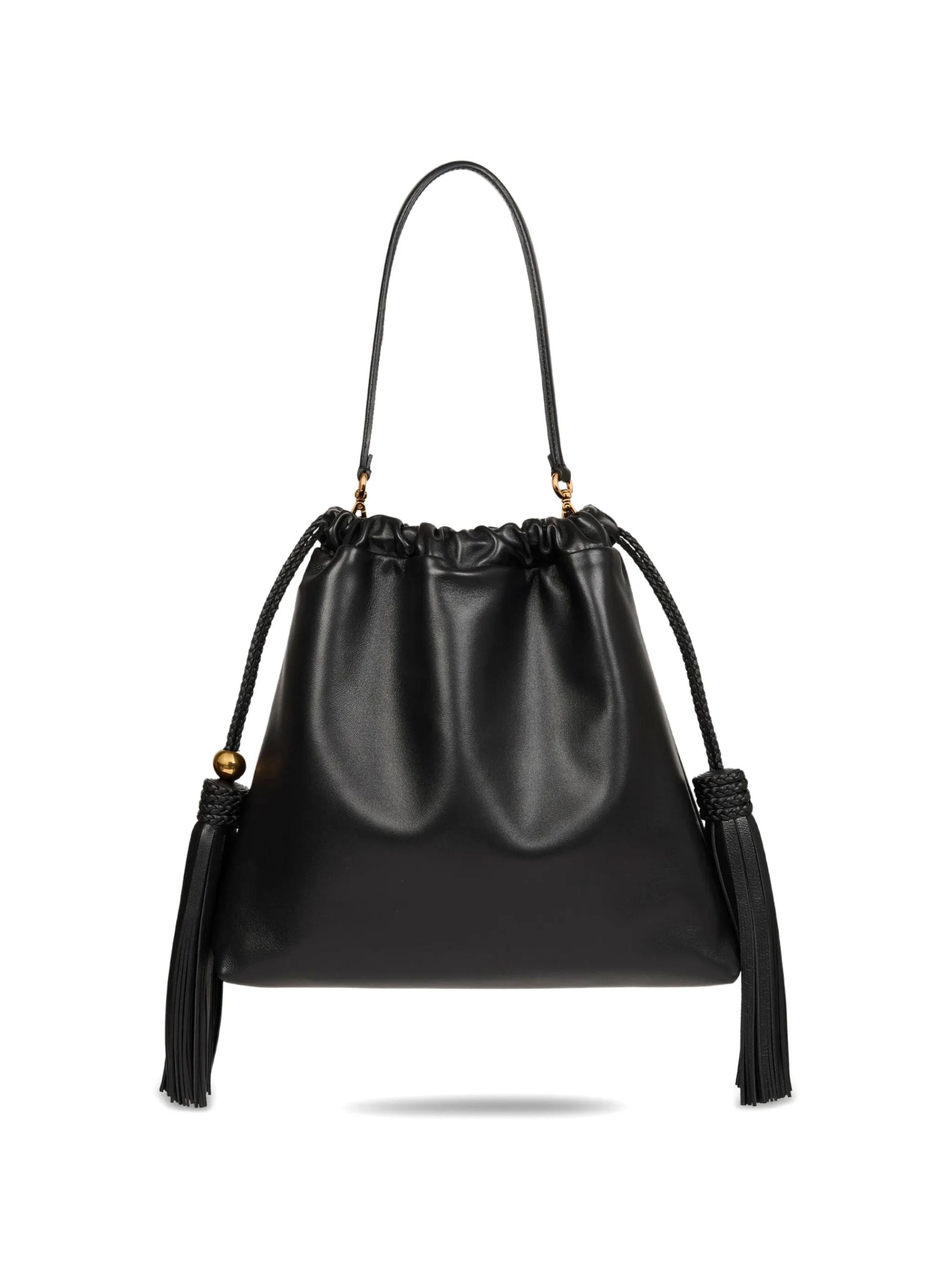 Borsa a spalla Kalispera media in pelle con nappine